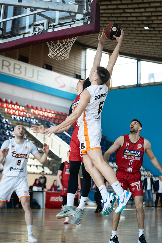 Košarkaši zemunskog Borca savladali su SPD Radnički iz Kragujevca sa 89:87, u utakmici 25.kola Meridianbet Košarkaške lige Srbije.