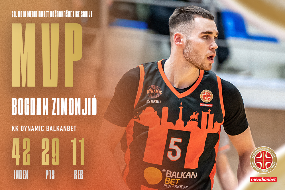 U pitanju je bek tima iz predgrađa, Bogdan Zimonjić, koji je u meču protiv krstaša ostvario double-double učinak. Zimonjić je u svoju statistiku upisao 29 poena, 11 skokova i dve asistencije, te je sa valorizacijom od 42 indexna poena zasluženo poneo titulu MVP igrača 28. kola Meridianbet Košarkaške lige Srbije.