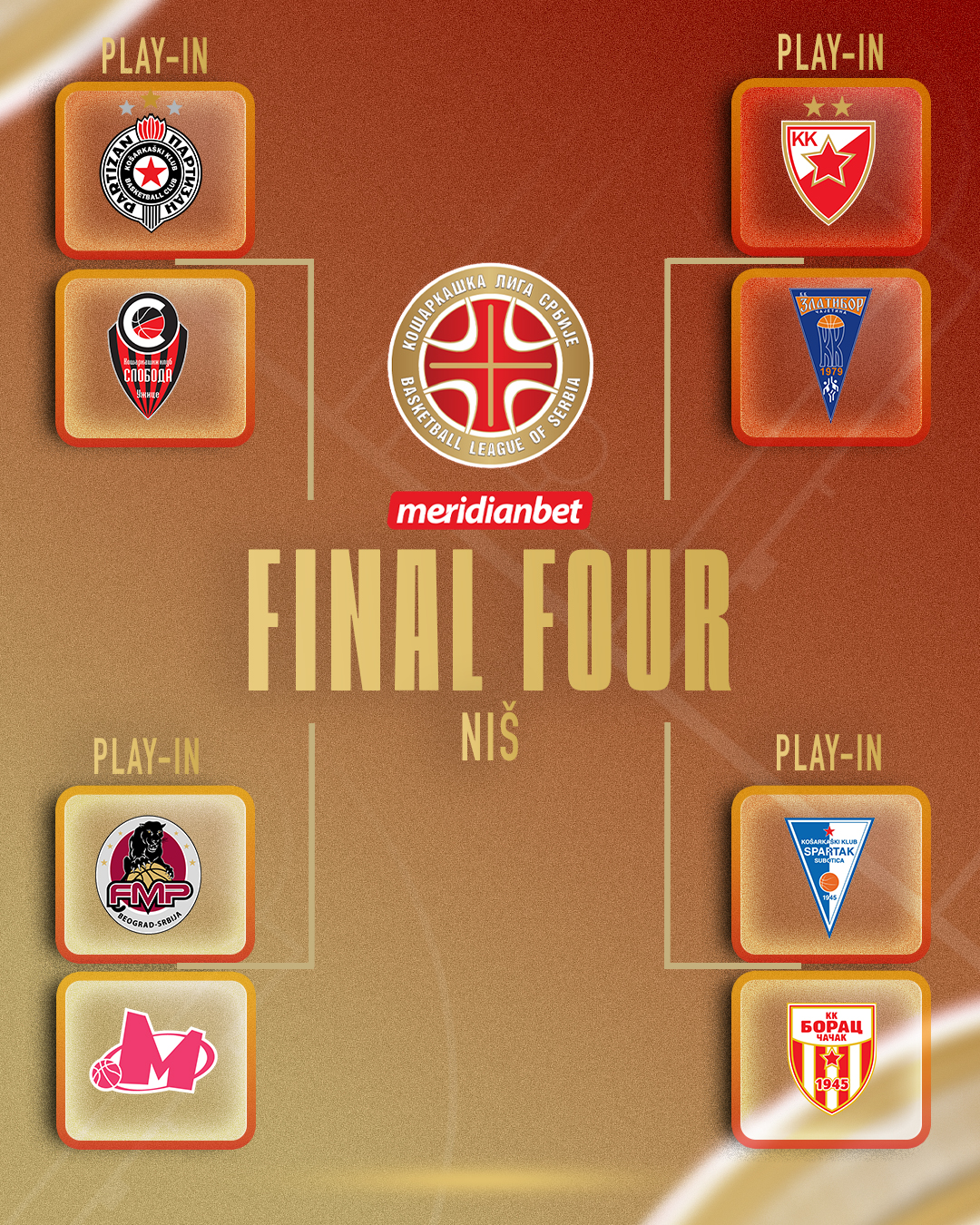Dve prvoplasirane ekipe iz regularnog dela KLS, uz šest srpskih klubova koji se takmiče u ABA ligi, odigraće najpre play in. Play in će se igrati po principu četvrtfinala, na dve dobijene utakmice, od kojih će se prva igrati na terenu bolje plasirane ekipe.