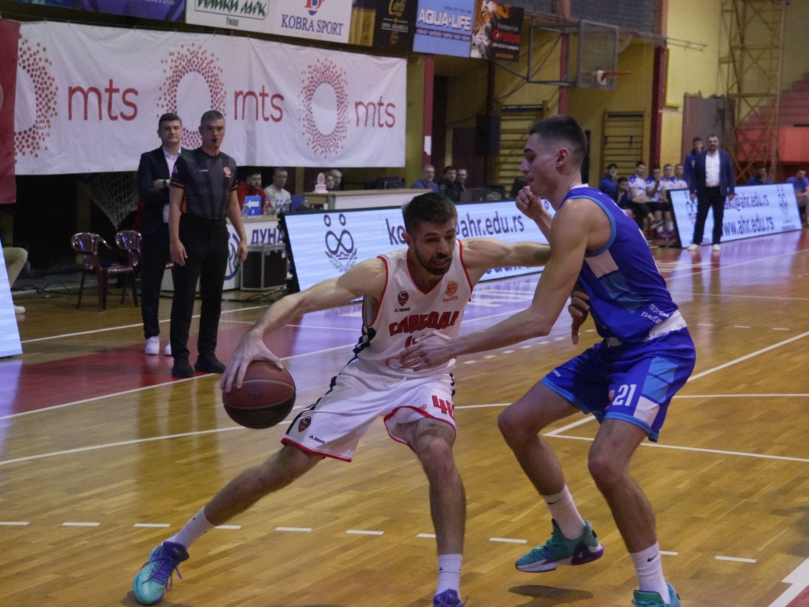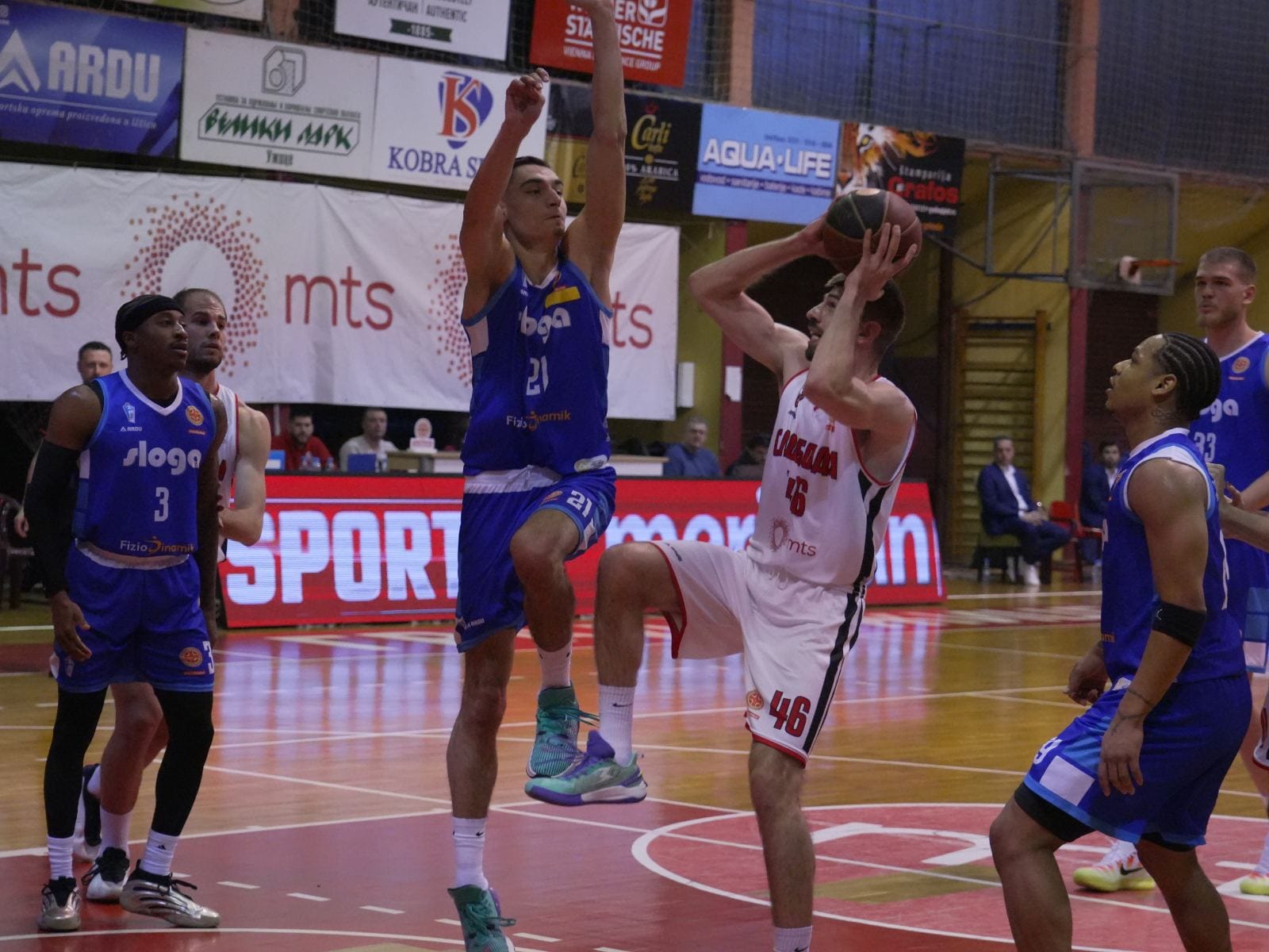 Šuškavčević je nastupio rovit, pa je veliki teret pod košem pao na mladog Dabovića, koji je odličnom igrom uspešno parirao centrima Sloge. Tokom prvih 20 minuta gledali smo potpuno izjednačen meč. Slobodu je predvodio izuzetno raspoloženi kapiten Božić, koji je sa pet pogođenih trojki bio ključna figura susreta.